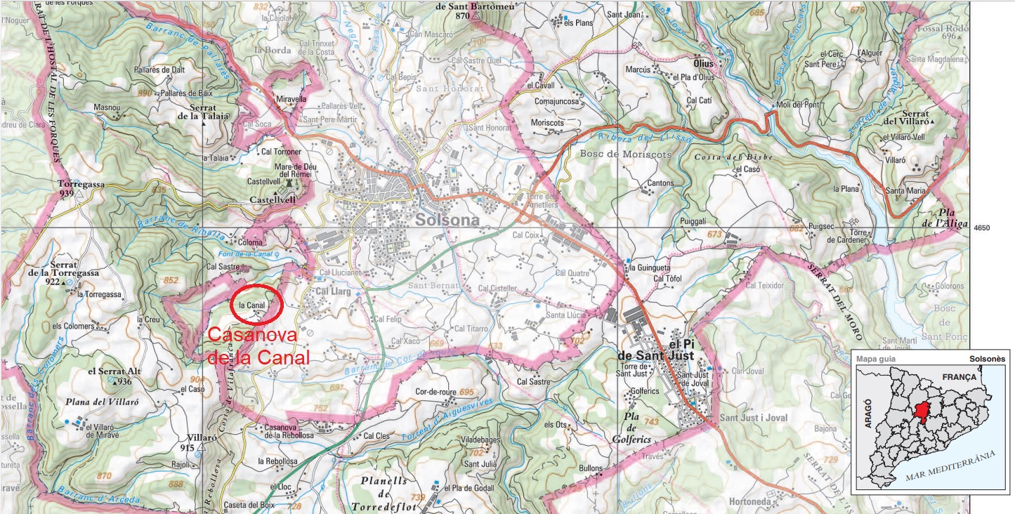 Casanova de la Canal, poble del Castellvell, municipi d’Olius (mapa)