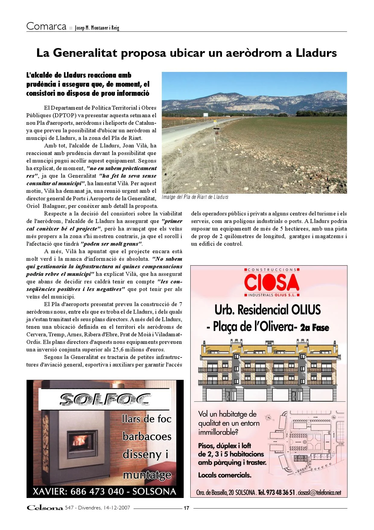 - Celsona 547 – 14-12-2007 – La Generalitat proposa ubicar un aeròdrom a Lladurs (imatge)